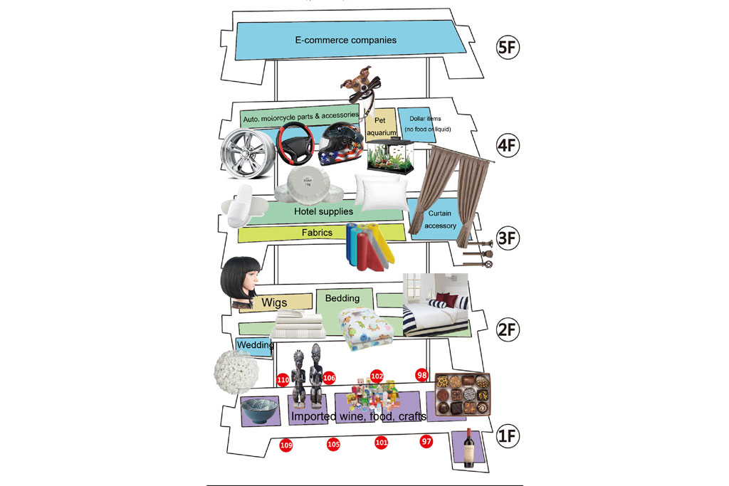 There are about 7,000 wholesale outlets selling imported products, automotive parts, wedding decoration items and pet supplies.
